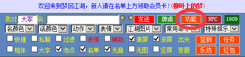 《4》.江湖所有的商店和江湖功能入口,都在屏幕下方,发言按钮右边的 功能 按钮里,可以找到。切记!!