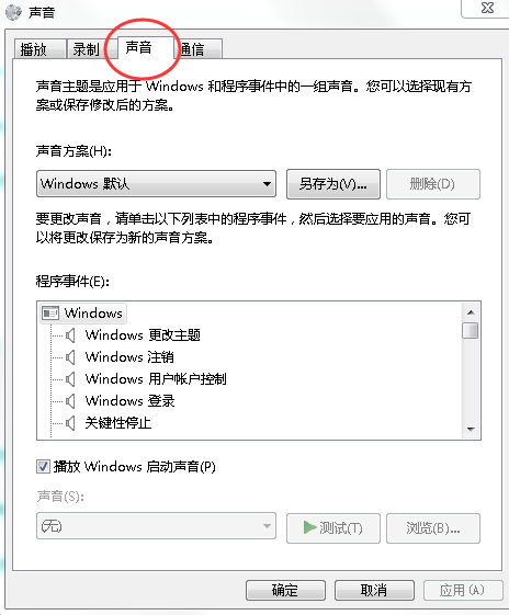 三、点击“声音”选项卡,按下图进行设置: